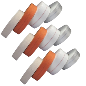 Fitas (Cadarços) de fibra de vidro, algodão e poliéster, usadas para isolamento elétrico de motores elétricos e transformadores, geradores e outros equipamentos elétricos, reforço e proteção de cabos telefônicos, amarração de barras e bobinas impregnadas ou não...